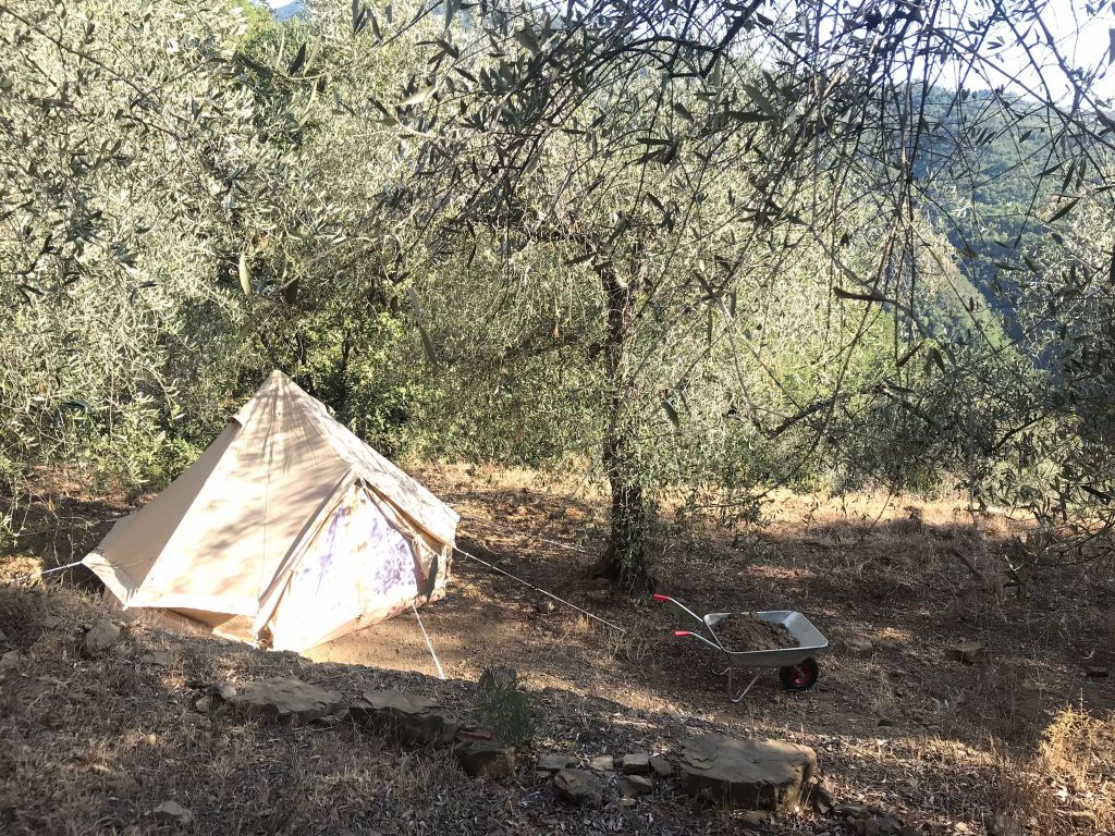 Activités possibles ? Ramasser et trier des pierres plus ou moins grosses, se reposer dans le hamac, couper des branches mortes des oliviers, méditer, préparer une zone pour le futur étang et pour une grande plate-forme en bois, cuisiner, nourrir nos corps, nos cœurs et nos esprits.