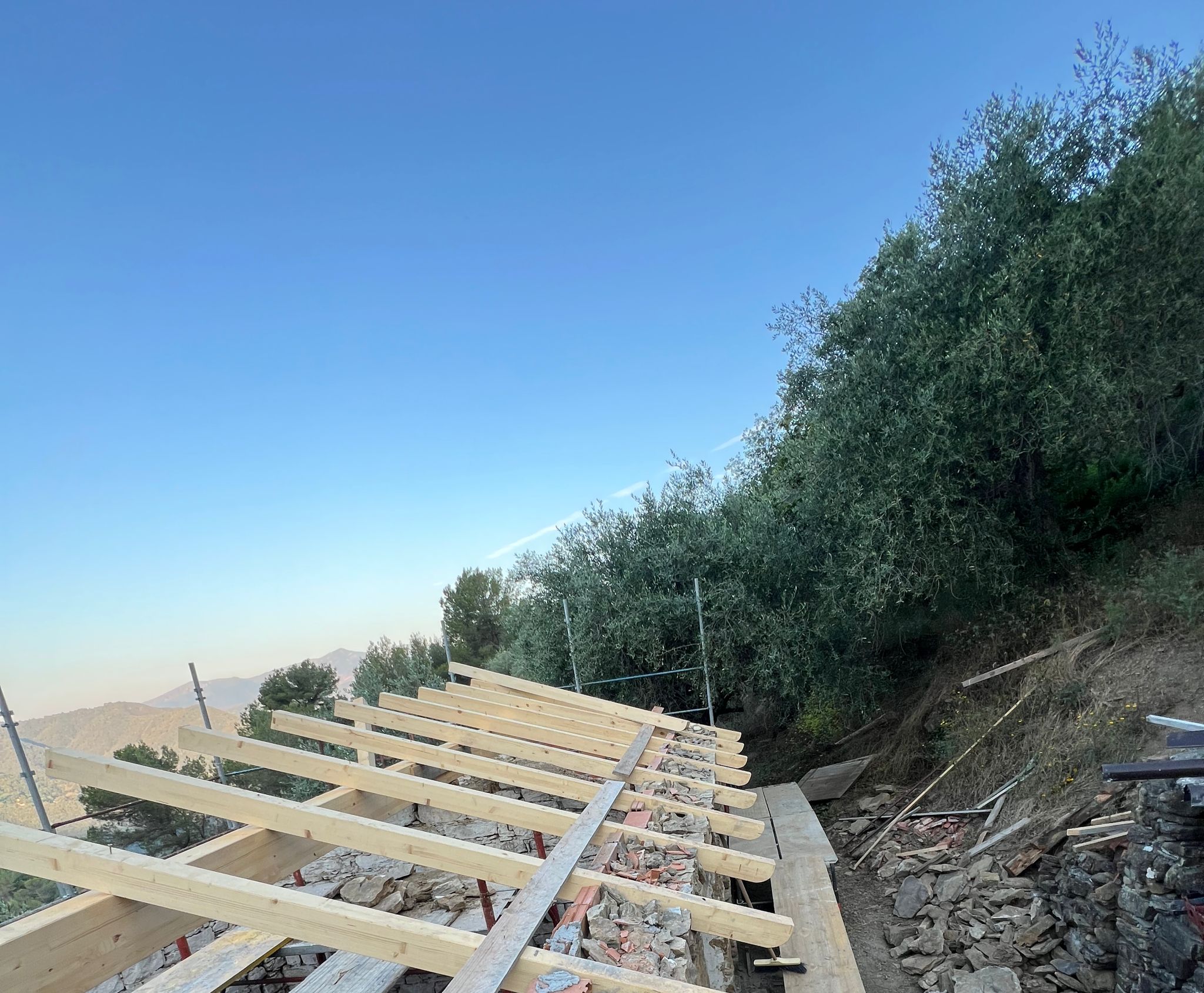 The cottage – the meeting place in the middle of La Lucciola – was on the verge of collapse, with a roof that was old and leaking and one wall cracked… The wall is repaired now, and the roof is being renewed. The total cost is 28 000€.